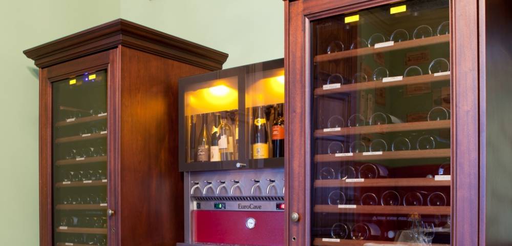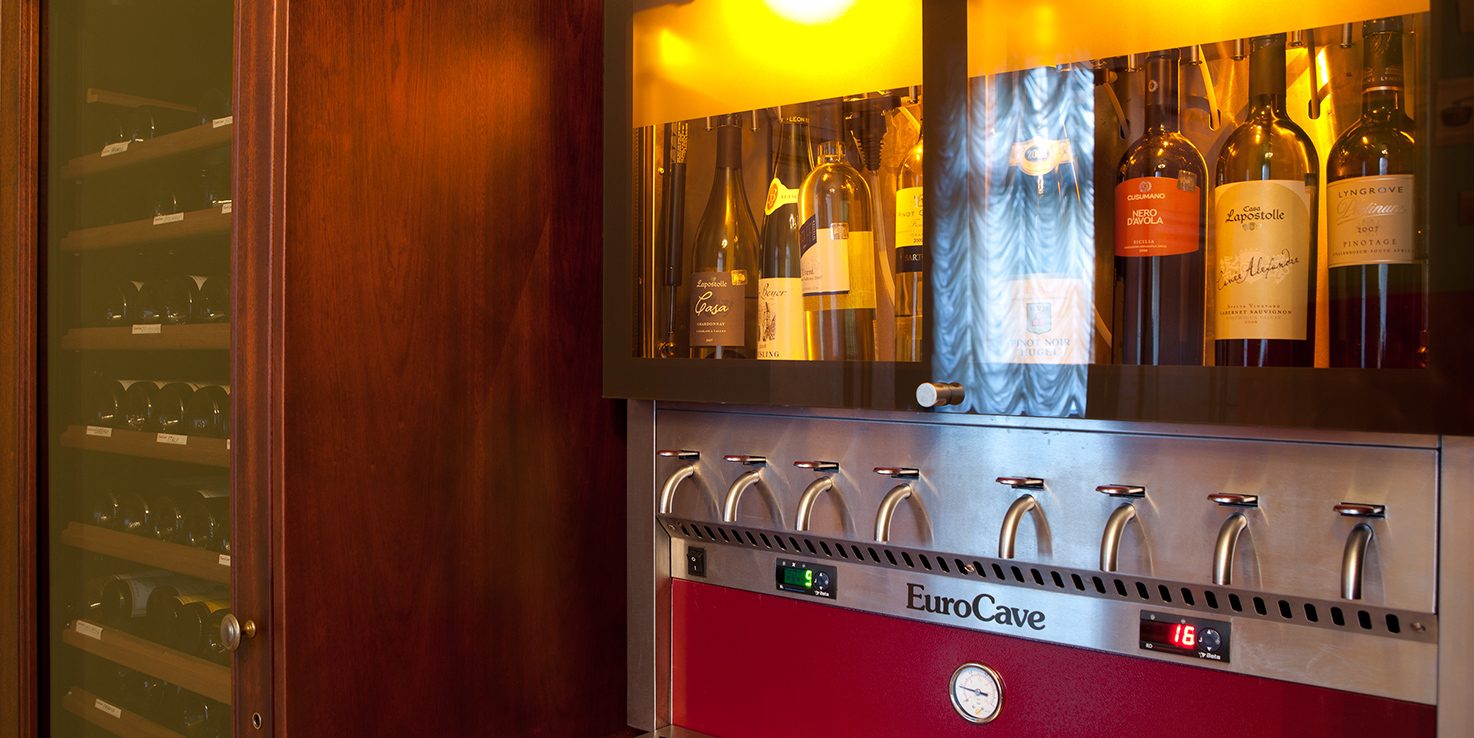 In addition, we are proud of our “Euro Cave” professional wine cabinets and Vin-au-Verre wine refrigerator that preserves the open bottles for up to 3 weeks and always keeps our wine ready to be served by glass.