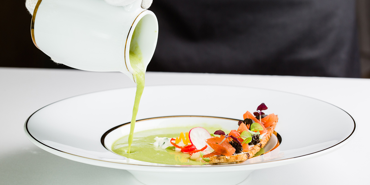 Restaurant Renomme, Gallery Bar Vinoteka offer the freshest seasonal local products prepared by culinary professionals, great selection of wine, remarkably beautiful Frette tablecloths, Limoge porcelaine specially selected and produced for Gallery Park Hotel SPA, Guy Degrenne shining cutlery, and of course, impeccable service.