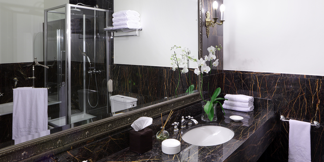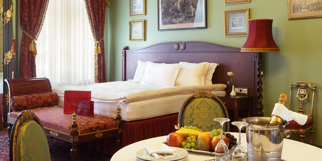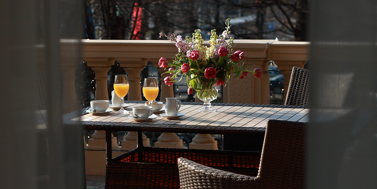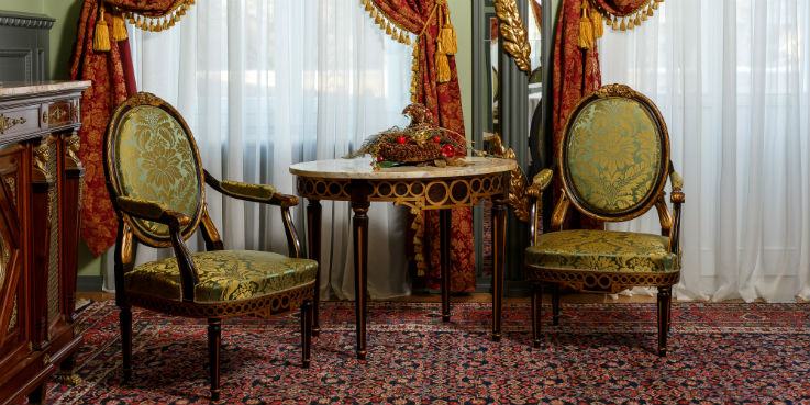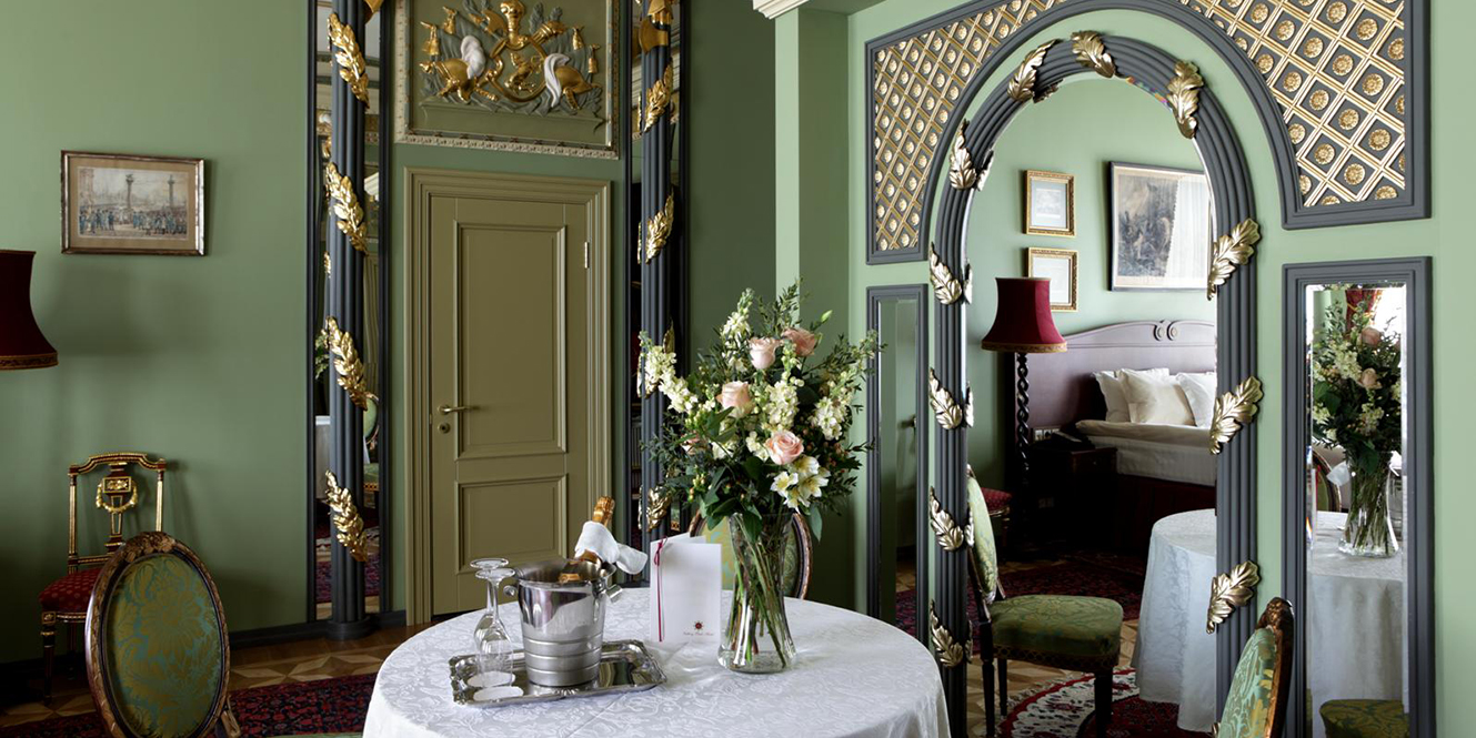 Luxurious Imperial Suite is elegance at its absolute. It is the most noble of all luxury suites in Latvia and is awarded the Best Luxury Suite in Latvia by World Travel Awards. Unique grandeur French Napoleon III style interior, high ceilings with decorations and hand-paintings, is complemented by collectible antique pieces of art acquired in the Europe’s leading auction houses. The en- suite bathroom is decked with the world famous Carrara marble- Gallo Nero. The en suite 35 sq.m. private terrace lies among linden and chestnut greenery and offers you the enjoyment of a secluded private dinner or a glass of wine or cup of coffee overlooking Riga' s historic grand views and parks. Take a delight and warm-up in Gallery SPA sauna or swim in a jet-stream swimming pool, book a massage or exquisite Carita facial that can be arranged right in your suite. A personal assistant' s service will ensure all your special wishes come true during your stay here at the Imperial Suite and Riga.