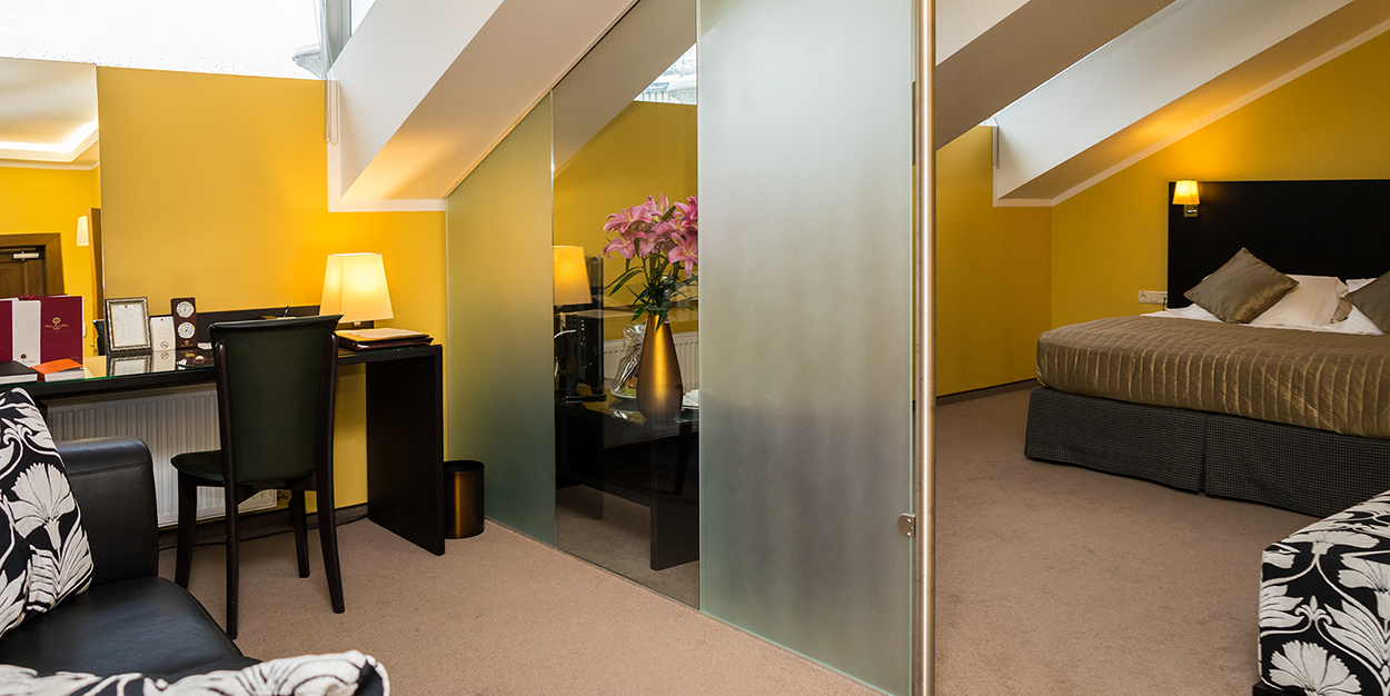 All Junior Suite rooms are inspired by the refinments of the 19th century unique design and each Suite is decorated with antiques acquired in Europe's leading auction houses. High ceiling ornaments are hand painted by Latvian artists and renovators. Some Junior Suite rooms offer cozy balconies with grand views of the Latvian National Museum of Arts and the Art Academy of Latvia, located just across the hotel. Junior Suite room on the 4th floor welcomes its guests with sophisticated contemporary ambiance tailor made by Italian designers.